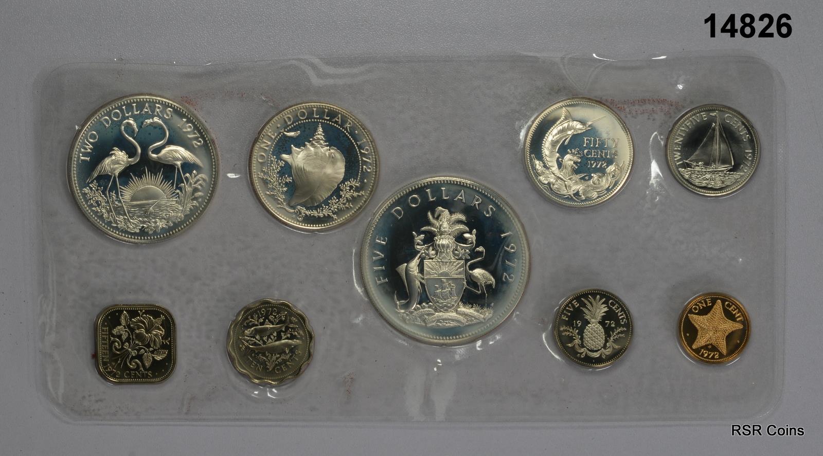 1972 9 COIN BAHAMAS ISLANDS PROOF SET 2 STERLING SILVER COINS 2 80% SILVER GEM COINS COA MINT SEALED #14826