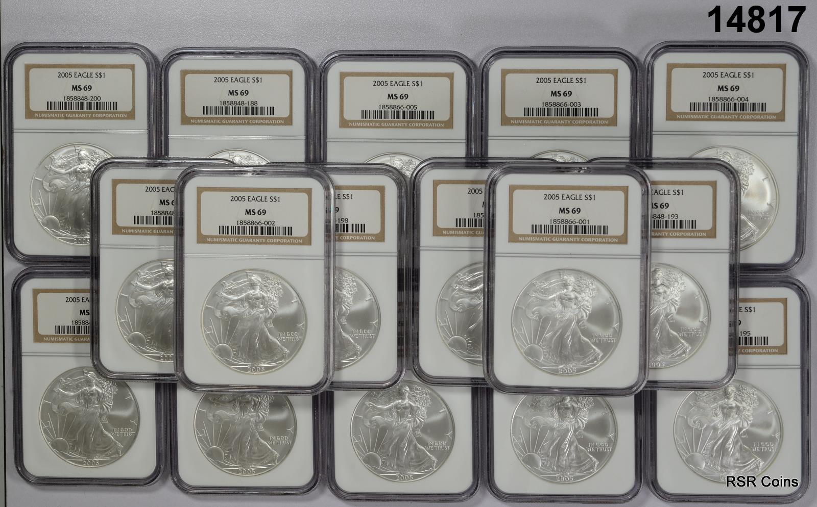 LOT OF 16 2005 NGC CERTIFIED SILVER EAGLES MS69 NEAR PERFECT! WITH NGC BOX! #14817