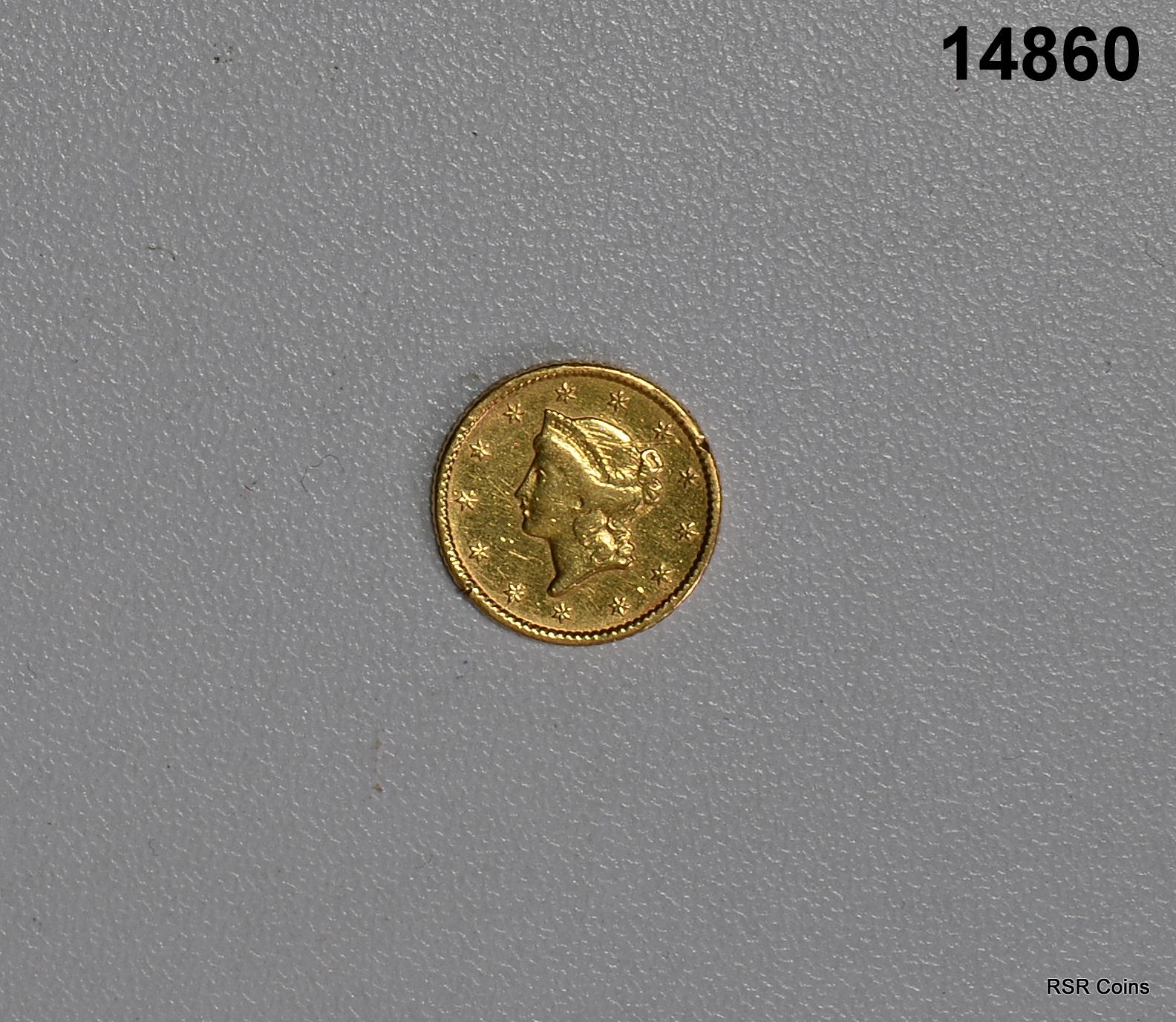 1853 $1 GOLD COIN TYPE 1 1 LIGHT CUT EACH SIDE! #14860