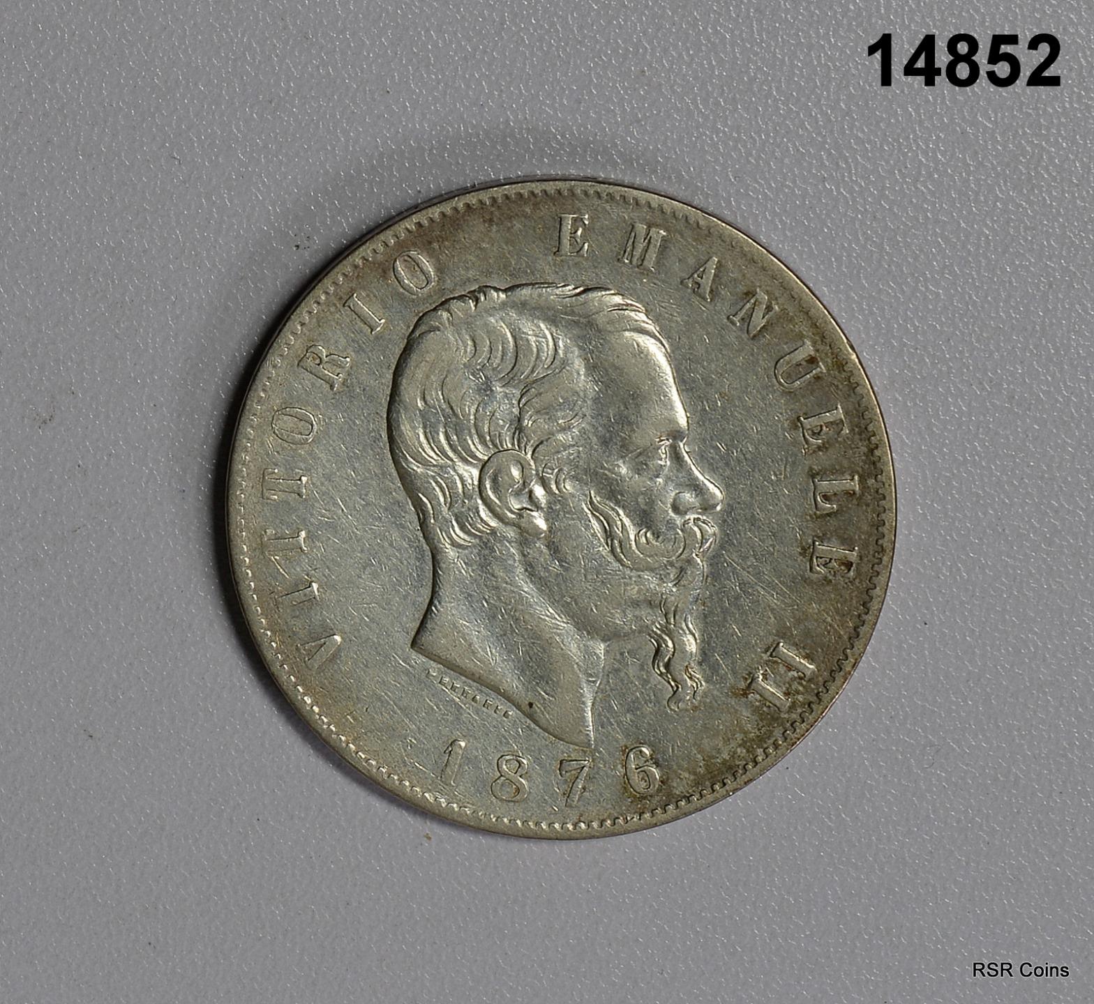 1876 R ITALY 5 LIRA SILVER COIN NICE! #14852