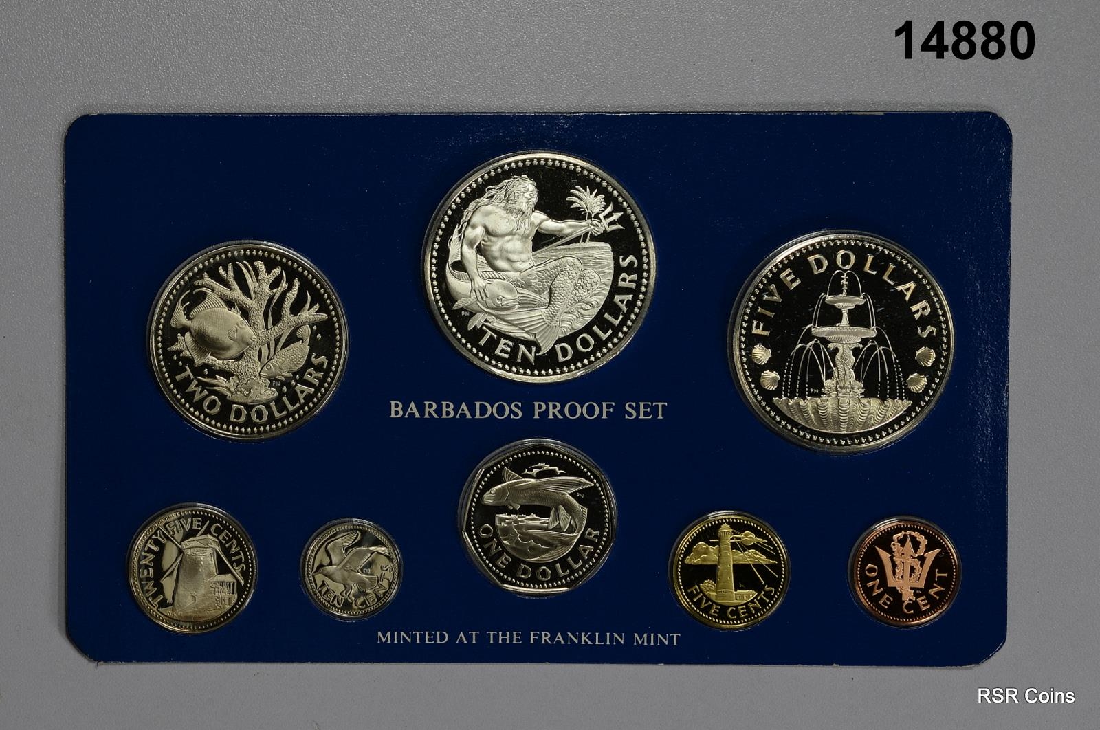 BARBADOS 1975 PROOF SET FRANKLIN MINT MINT SEALED GEM COINS! 1.92 SEALED ASW + COA! #14880